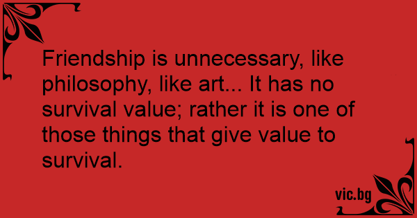 Friendship is unnecessary, like philosophy, like art... It has no survival value; rather it is one of those things that give value to survival.