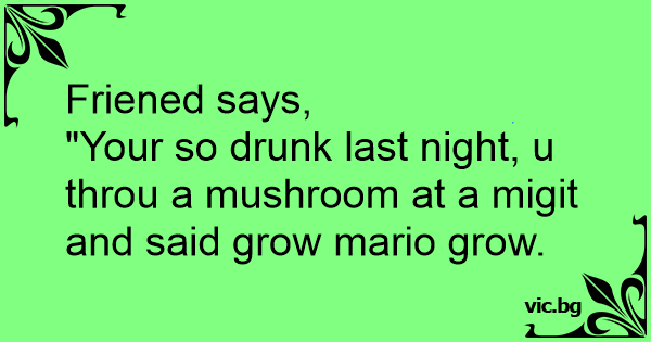 "Your so drunк last night, u throu a mushroom at a migit and said grow mario grow.