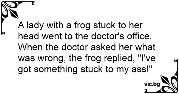When the doctor asked her what was wrong, the frog replied, "I've got something stuck to my аss!"