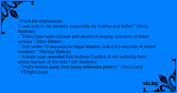 - "I'll fight Lloyd Honeyghan for nothing if the price is right." (Marlon Starling)