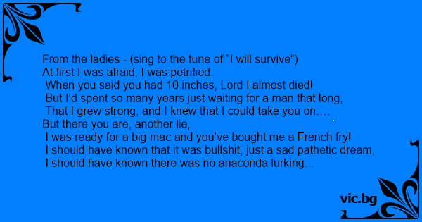 From the ladies - (sing to the tune of “I will survive”)