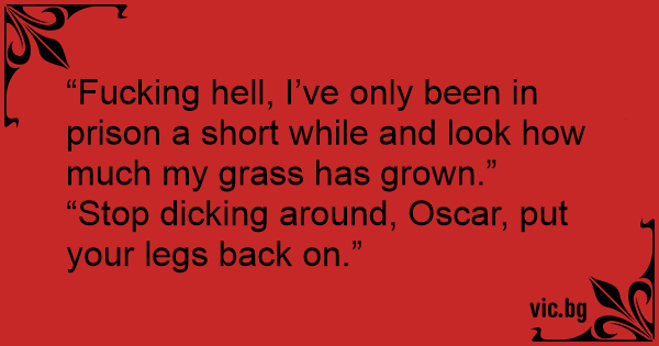 “Stop dicking around, Oscar, put your legs back on.”