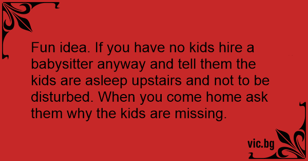 Fun idea. If you have no kids hire a babysitter anyway and tell them the kids are asleep upstairs and not to be disturbed. When you come home ask them why the kids are missing.