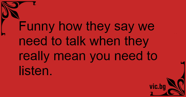 Funny how they say we need to talk when they really mean you need to listen.