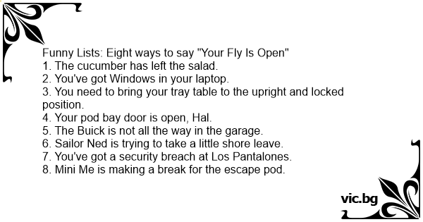 Funny Lists: Eight ways to say "Your Fly Is Open"