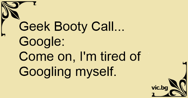 Geek Воотy Call... Google:<br />Come on, I'm tired of Googling myself.