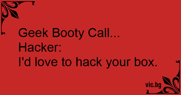 Geek Воотy Call... Hacker:<br />I'd love to hack your box.