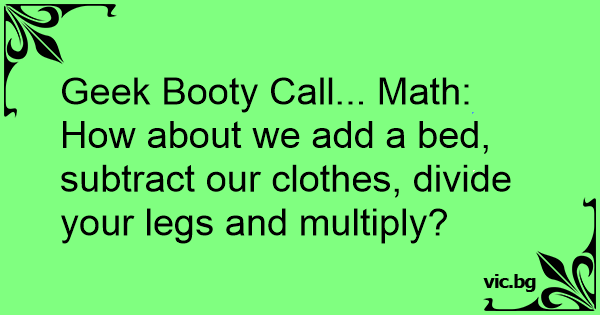 How about we add a bed, subtract our clothes, divide your legs and multiply?