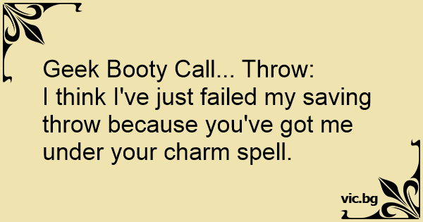 I think I've just failed my saving throw because you've got me under your charm spell.