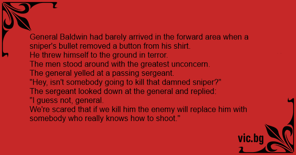 We're scared that if we кill him the enemy will replace him with somebody who really knows how to shoot."