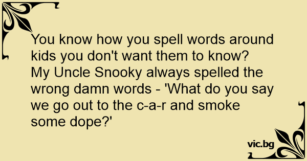 My Uncle Snooky always spelled the wrong dамn words - 'What do you say we go out to the c-a-r and smoke some dope?'