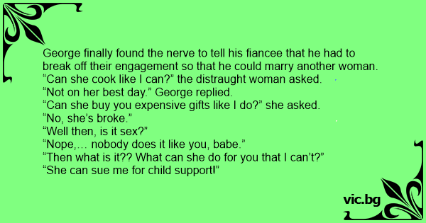 George finally found the nerve to tell his fiancee that he had to break off their engagement so that he could marry another woman.