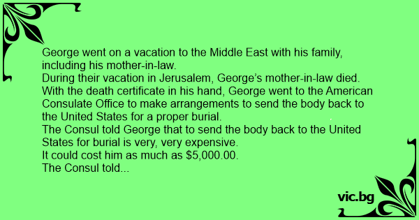 During their vacation in Jerusalem, George’s mother-in-law died.