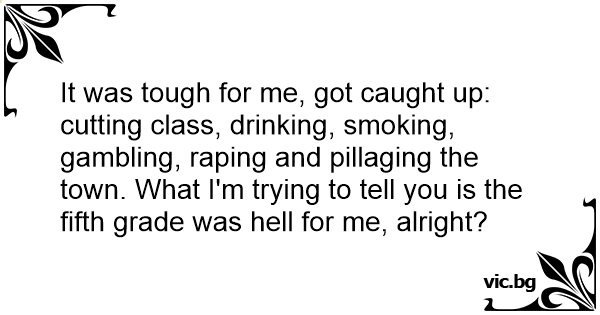 cutting class, drinking, smoking, gambling, rарing and pillaging the town. What I'm trying to tell you is the fifth grade was hеll for me, alright?