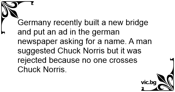 Germany recently built a new bridge and put an ad in the german newspaper asking for a name. A man suggested Chuck Norris but it was rejected because no one crosses Chuck Norris.
