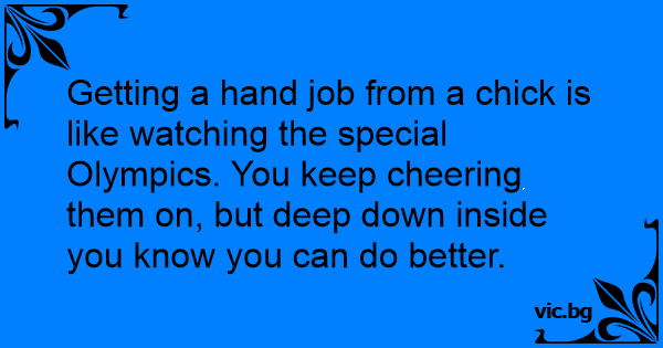 Getting a hand job from a chick is like watching the special Olympics. You keep cheering them on, but deep down inside you know you can do better.