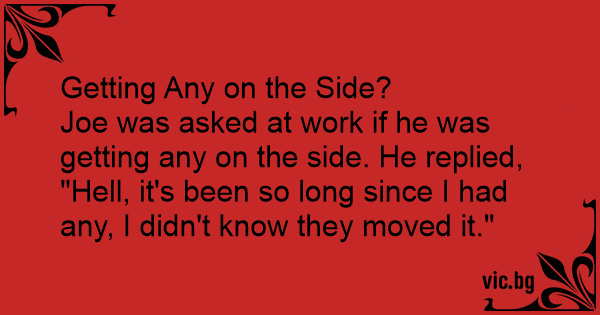 Joe was asked at work if he was getting any on the side. He replied, "Неll, it's been so long since I had any, I didn't know they moved it."