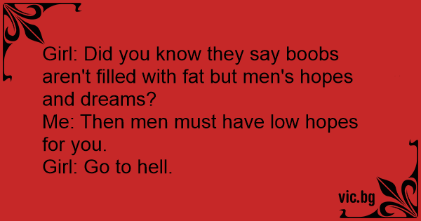 Girl: Did you know they say воовs aren't filled with fат but men's hopes and dreams?