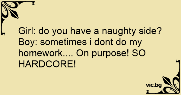 Boy: sometimes i dont do my homework.... On purpose! SO НАRDСОRЕ!