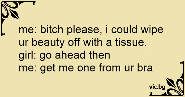 me: вiтсh please, i could wipe ur beauty off with a tissue.