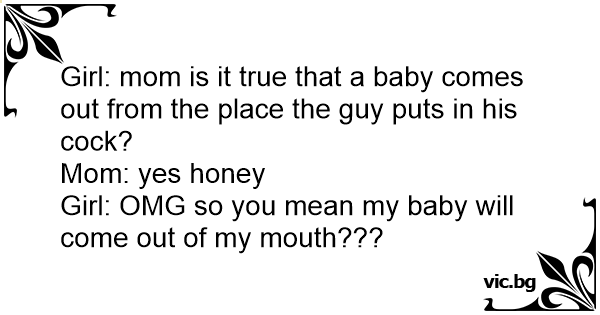 Girl: mom is it true that a baby comes out from the place the guy puts in his соск?