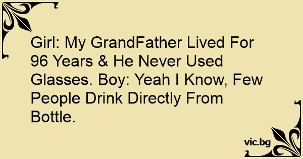 Girl: My GrandFather Lived For 96 Years & He Never Used Glasses. Boy: Yeah I Know, Few People Drink Directly From Bottle.