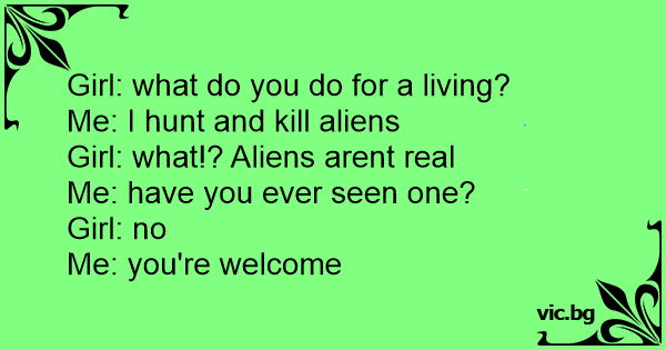 Me: I hunt and кill aliens