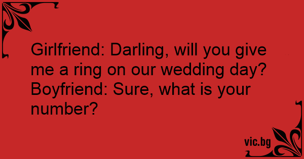 Girlfriend: Darling, will you give me a ring on our wedding day?