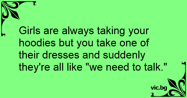 Girls are always taking your hoodies but you take one of their dresses and suddenly they're all like "we need to talk."