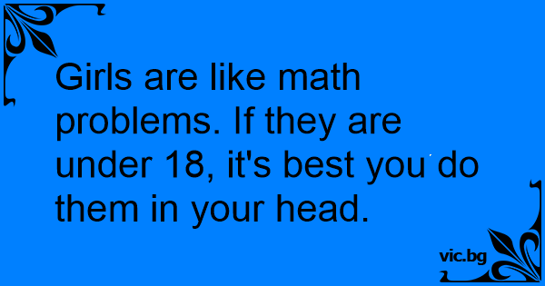 Girls are like math problems. If they are under 18, it's best you do them in your head.