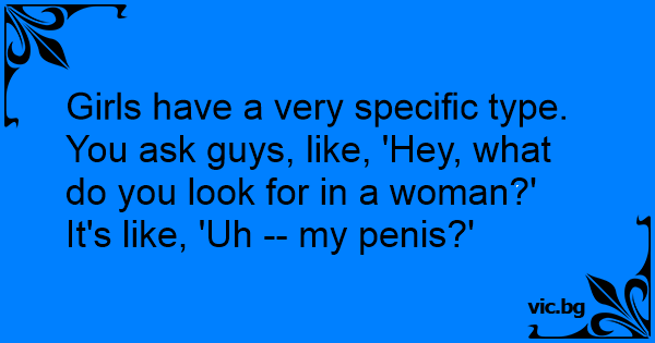 Girls have a very specific type. You ask guys, like, 'Hey, what do you look for in a woman?' It's like, 'Uh -- my реnis?'