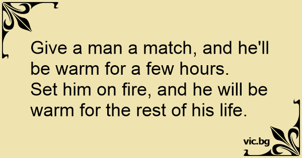 Give a man a match, and he'll be warm for a few hours.