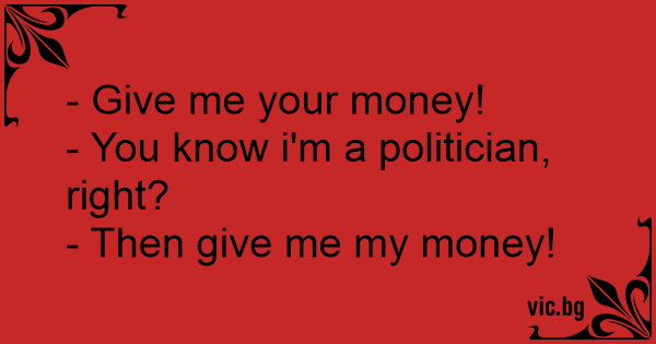 Dammi i tuoi soldi! Sono un politico Allora dammi i miei soldi