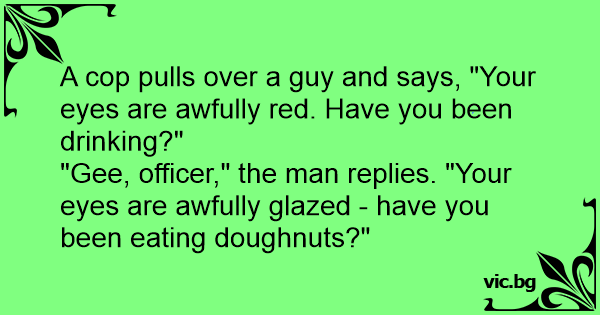 "Gee, officer," the man replies. "Your eyes are awfully glazed - have you been eating doughnuts?"