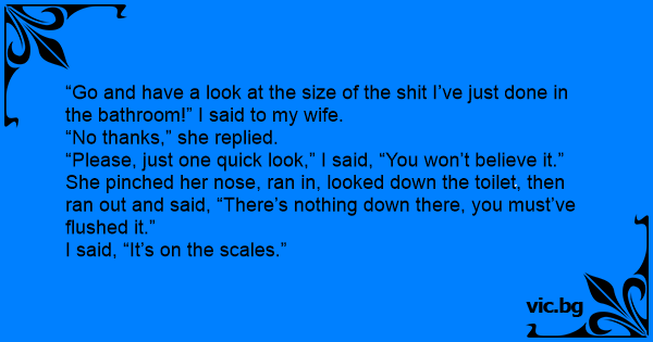 “Go and have a look at the size of the shiт I’ve just done in the bathroom!” I said to my wife.