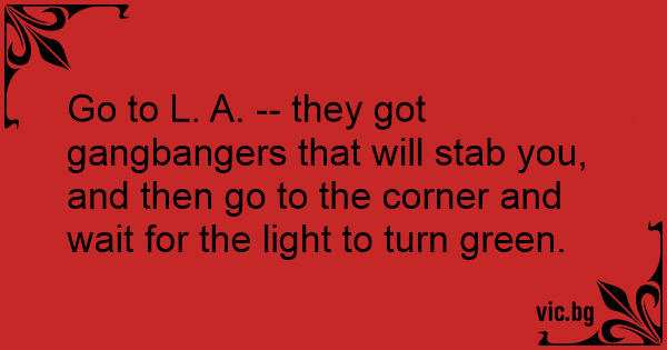Go to L. A. -- they got gangbangers that will stab you, and then go to the corner and wait for the light to turn green.