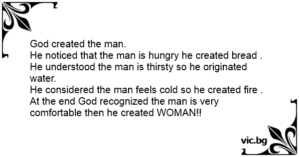 At the end God recognized the man is very comfortable then he created WOMAN!!