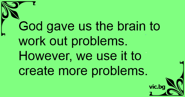 God gave us the brain to work out problems. However, we use it to create more problems.