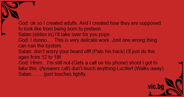 Satan: don’t worry your beard off! (Pats his back) I’ll just do the ages from 12 to 18!