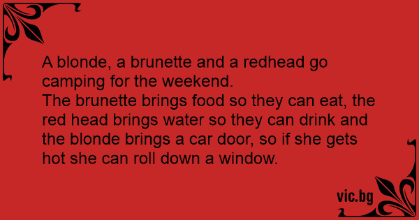 A blonde, a brunette and a redhead go camping for the weekend.