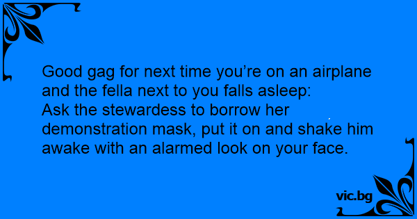 Good gag for next time you’re on an airplane and the fella next to you falls asleep: