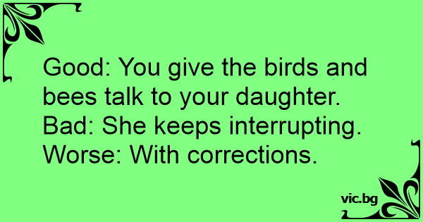 Good: You give the birds and bees talk to your daughter.