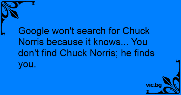 Google won't search for Chuck Norris because it knows... You don't find Chuck Norris; he finds you.