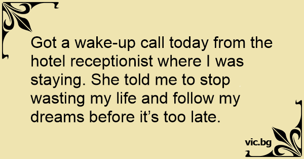 Got a wake-up call today from the hotel receptionist where I was staying. She told me to stop wasting my life and follow my dreams before it’s too late.