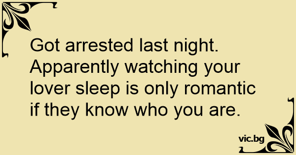 Got arrested last night. Apparently watching your lover sleep is only romantic if they know who you are.