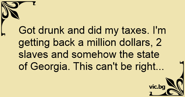 Got drunк and did my taxes. I'm getting back a million dollars, 2 slaves and somehow the state of Georgia. This can't be right...