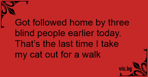 Got followed home by three blind people earlier today. That’s the last time I take my cat out for a walk