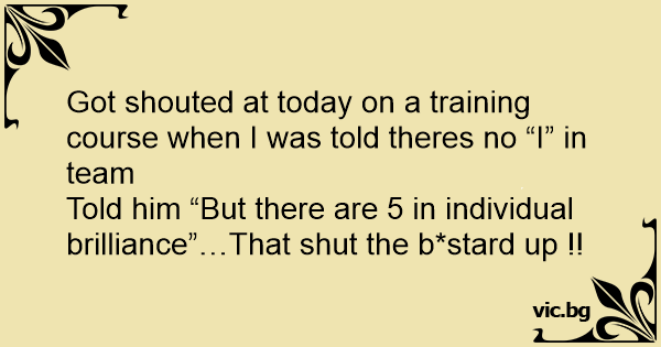 Told him “But there are 5 in individual brilliance”…That shut the b*stard up !!