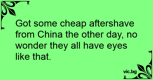 Got some cheap aftershave from China the other day, no wonder they all have eyes like that.