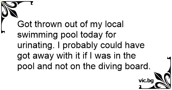 Got thrown out of my local swimming pool today for urinating. I probably could have got away with it if I was in the pool and not on the diving board.